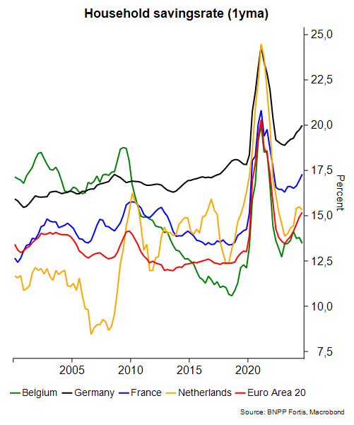Depuis 2010, les taux d’épargne – c’est-à-dire la part du revenu disponible qui n’est pas utilisée pour la consommation – sont en hausse pratiquement partout en Europe. Sauf dans notre pays. Et cela a un impact positif sur notre consommation privée. Mais qu’en sera-t-il demain ?