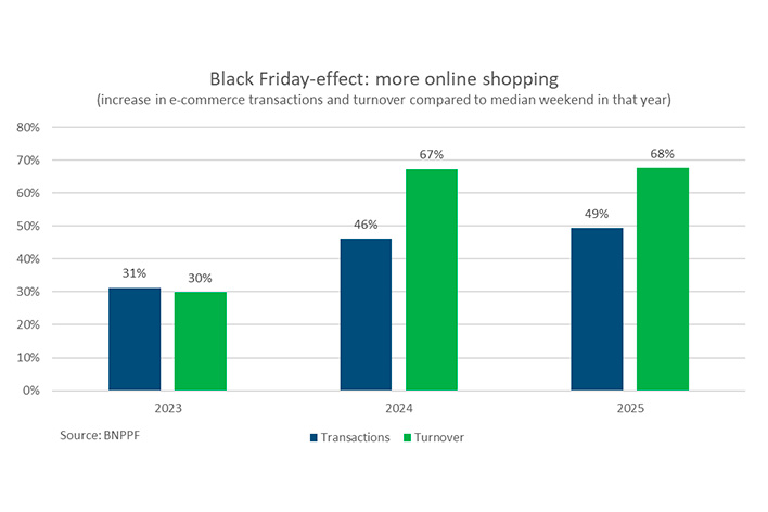 Online, however, the effect of bargain fever is much stronger. In 2023, digital turnover during the shopping weekend rose by 30%. This year, it increases by 68%. The number of transactions was also almost 50% higher.