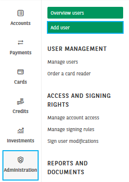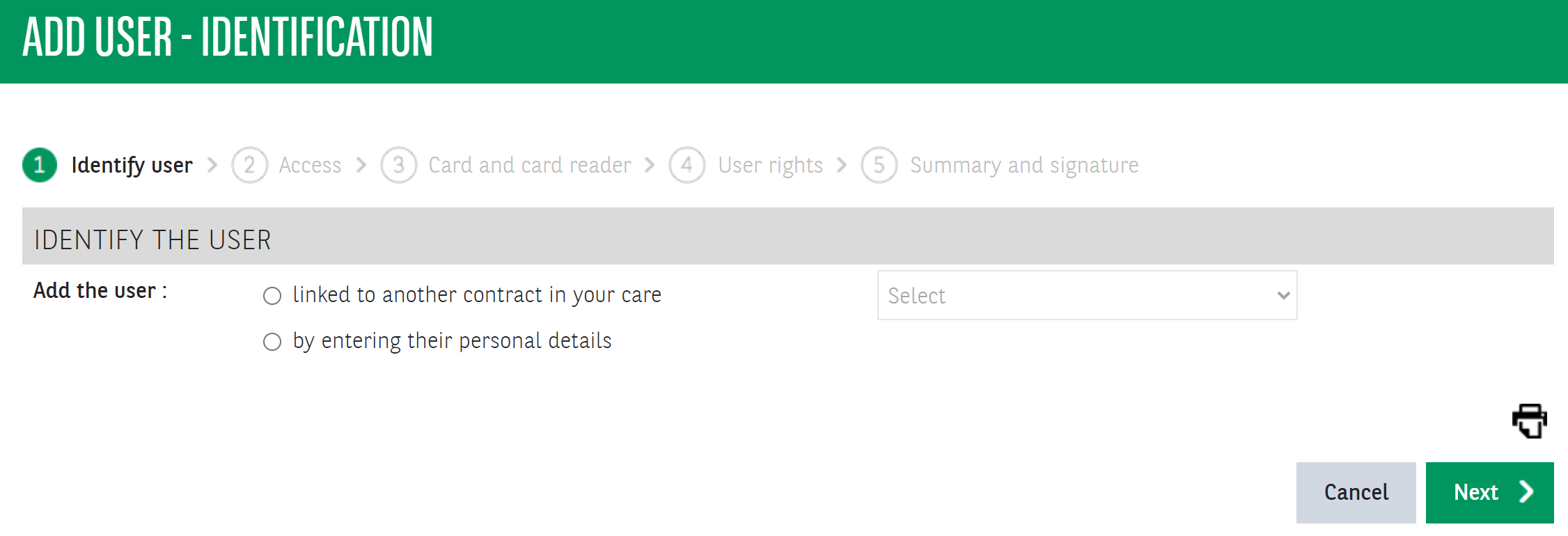 4. Choose which access the user needs: itsme® and/or an Easy banking Business card. Choose whether the user needs Easy Banking Business Mobile access.
