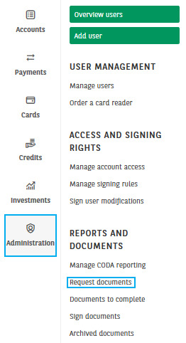 - In the menu of the module Administration, click on Request documents.