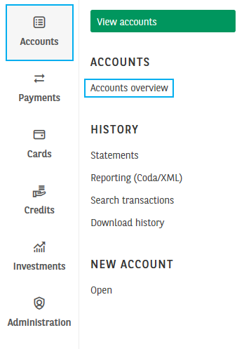 - In the module Accounts, you can either click on View accounts or Accounts overview.