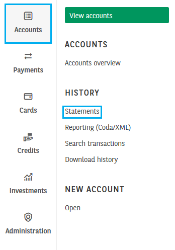 To download your statements, your preferences should be set to online. You can check this using the option Preferences. The statements will be available according to the chosen frequency. You can adjust this frequency at any time. For more information, see the starter guide Manage the preferences of your statements.