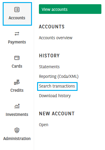 - In the module Accounts, click on Search transactions to find a specific transaction.