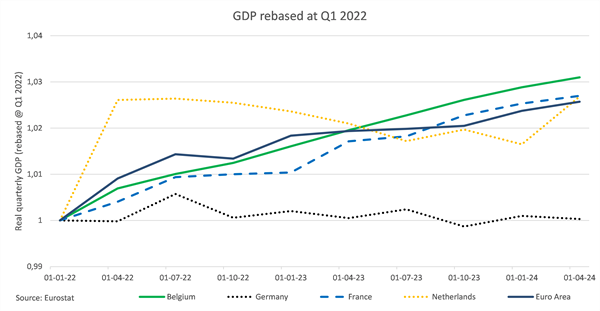 Les chiffres finaux du PIB pour le 2e trimestre de cette année ont été publiés il y a quelques semaines sur le site web d’Eurostat. Depuis début 2022, l’économie de notre pays a progressé de 3,1%. Une croissance beaucoup plus rapide que la moyenne de la zone euro, qui s’élève à 2,6%. À vrai dire, parmi les grands pays de la zone, seule l’Espagne a produit un meilleur score que nous. Nos voisins néerlandais et français ont atteint 2,7%. Quant à l’Allemagne, moteur du bloc euro jusqu’à récemment, elle enregistre 0,03%.