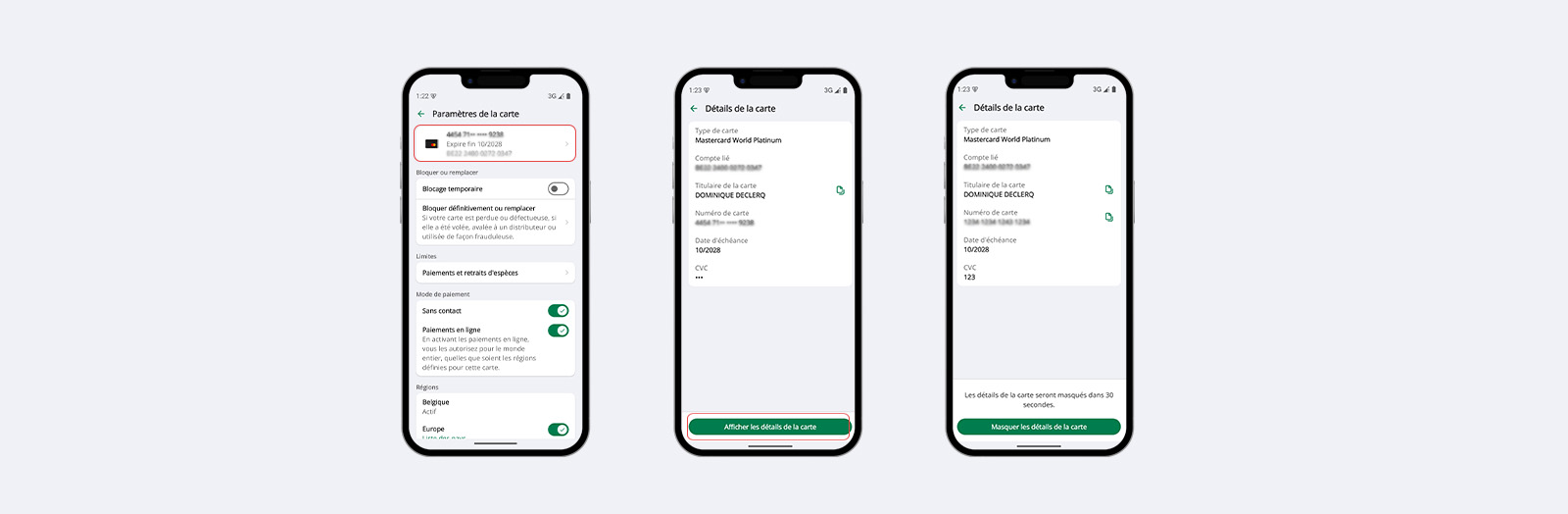 Pour voir le numéro de carte, la date d’expiration ou le code CCV (sécurisé) :