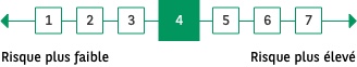 Le profil de risque d'un fonds de placement est déterminé par les types d'actifs dans lesquels il investit (actions, obligations, liquidités, etc.). Il est symbolisé sur une échelle allant de 1 à 7, le niveau 1 correspondant au risque le plus faible et le niveau 7 au risque le plus élevé. L’indicateur de risque indique la probabilité que vous subissiez des pertes en cas de mouvements sur les marchés ou d’une impossibilité de la société de gestion à vous rembourser.