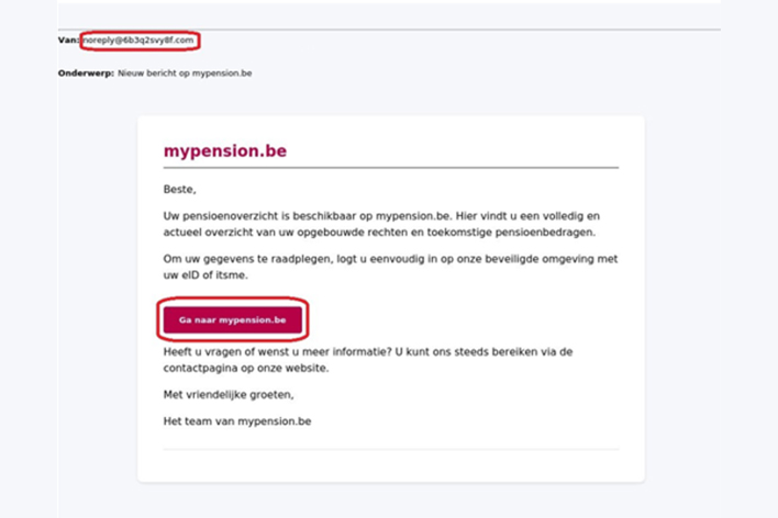 - Vreemde afzender: Het e-mailadres ziet er vreemd uit of het domein achter het @-teken klopt niet met de officiële instantie. Controleer altijd of het een legitiem e-mailadres is. Let goed op de domeinnaam en eventuele spelfouten. Leer de reflex aan om met de muis even over het e-mailadres te bewegen. Als dat er vreemd uitziet, is het gespooft.