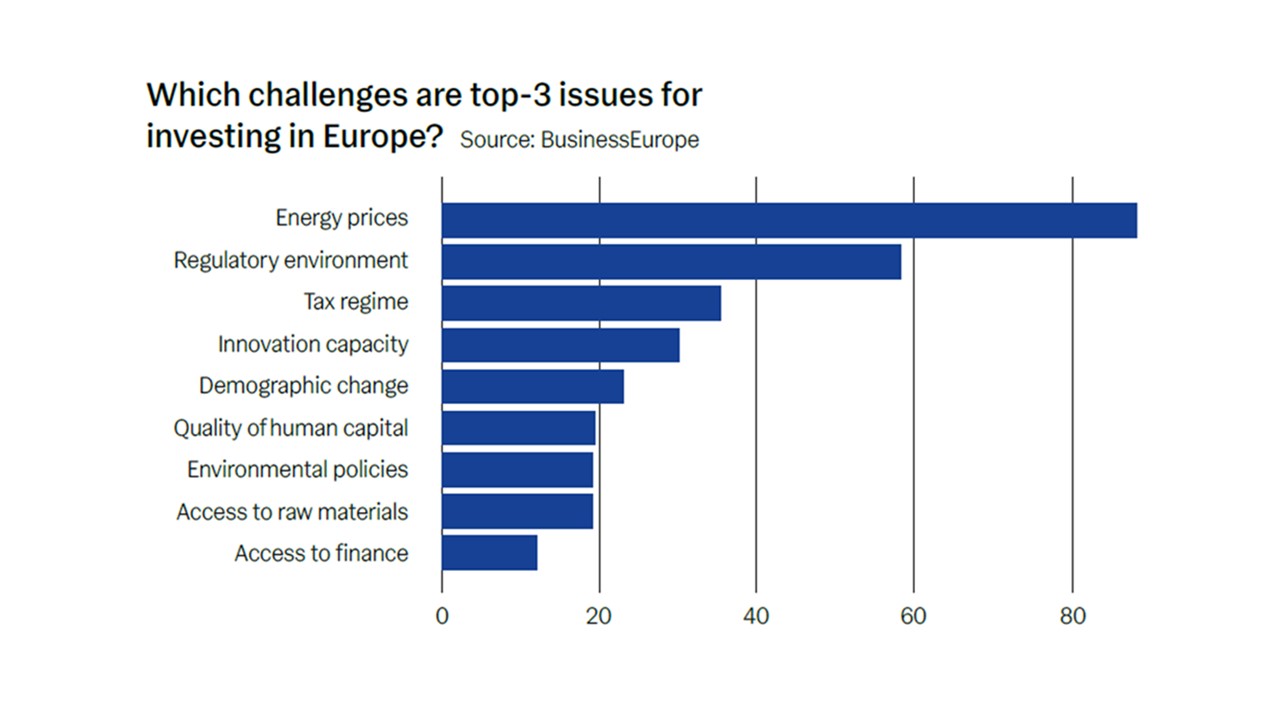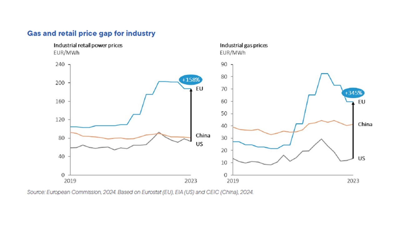 Ces dernières années, l’économie européenne a dû sacrifier une large part de sa compétitivité. De 2021 à 2024, l’UE a vu sa prospérité s’éroder de plus de 4% en raison de la hausse du coût des importations d’énergie extérieure à l’UE, d’après les calculs de l’organisation patronale Etion.