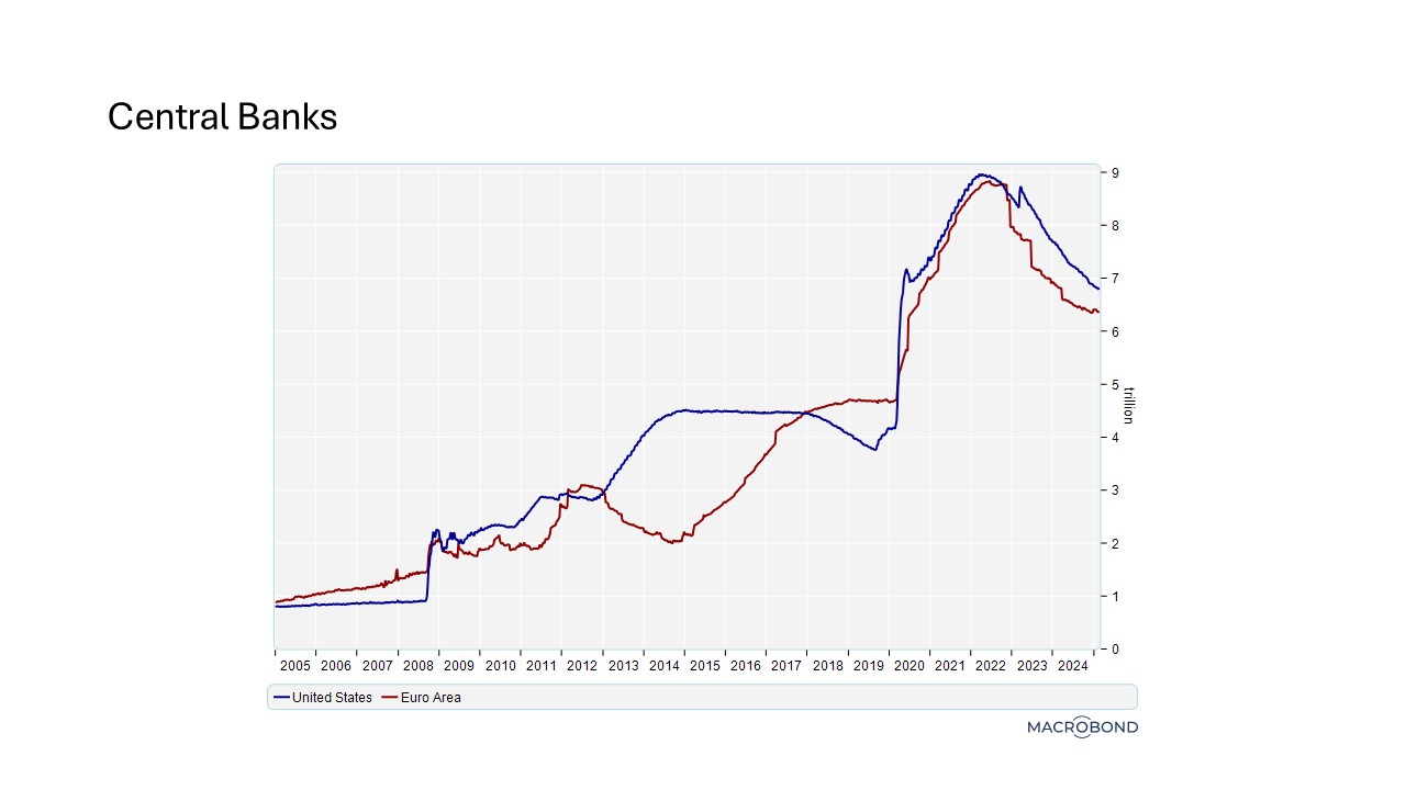 De Europese Centrale Bank (ECB) heeft tijdens de vele crisissen die Europa de afgelopen 15 jaar hebben geteisterd een belangrijke rol gespeeld. Zowel de financiële crisis van 2008 als de staatsschuldencrisis in 2012, de covidcrisis in 2020 en de energieschok maakten een accommoderend beleid noodzakelijk. Het belangrijkste gevolg daarvan was een drastische daling van de rentetarieven waardoor in verschillende landen zowel de korte als de lange rente onder nul zakte. Doordat de rente al sinds 2010 laag stond en verdere verlagingen onmogelijk waren, zette de ECB de omvang van haar balans in als monetair beleidsinstrument. Dat beleid leidde tot massale liquiditeitsinjecties in de economie. Toen de inflatie in de nasleep van de oorlog in Oekraïne explodeerde, was de ECB, in een poging de inflatie terug te dringen, verplicht het roer radicaal om te gooien. Daarom werd meermaals beslist om de rente te verhogen. Tegelijk wijzigde de ECB van koers om de hoeveelheid liquiditeit in de markt te normaliseren. Ze deed dat door de omvang van haar balans geleidelijk te verkleinen. De strijd tegen de inflatie blijkt een succes te zijn. Het is dus tijd om het monetaire beleid te versoepelen om te voorkomen dat de Europese economie te veel vertraagt. Vooral nu een handelsoorlog met de VS onvermijdelijk lijkt. Maar qua liquiditeitsbeheer zien we een voortzetting van de in 2022 ingezette koers, namelijk een verdere verkleining van de balansomvang. En dat vertaalt zich in minder liquiditeitsinjecties.