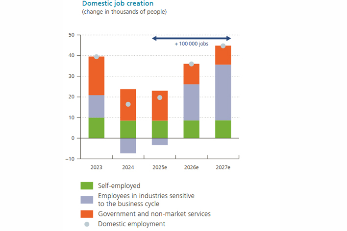 Net zoals de voorbije twee jaren ziet het er trouwens naar uit dat de overheid (ruim gemeten als “niet-marktdiensten”) andermaal de grootste tewerkstellingsboost zal genereren. Dat valt natuurlijk moeilijk te verzoenen met verhoogde begrotingsdiscipline.