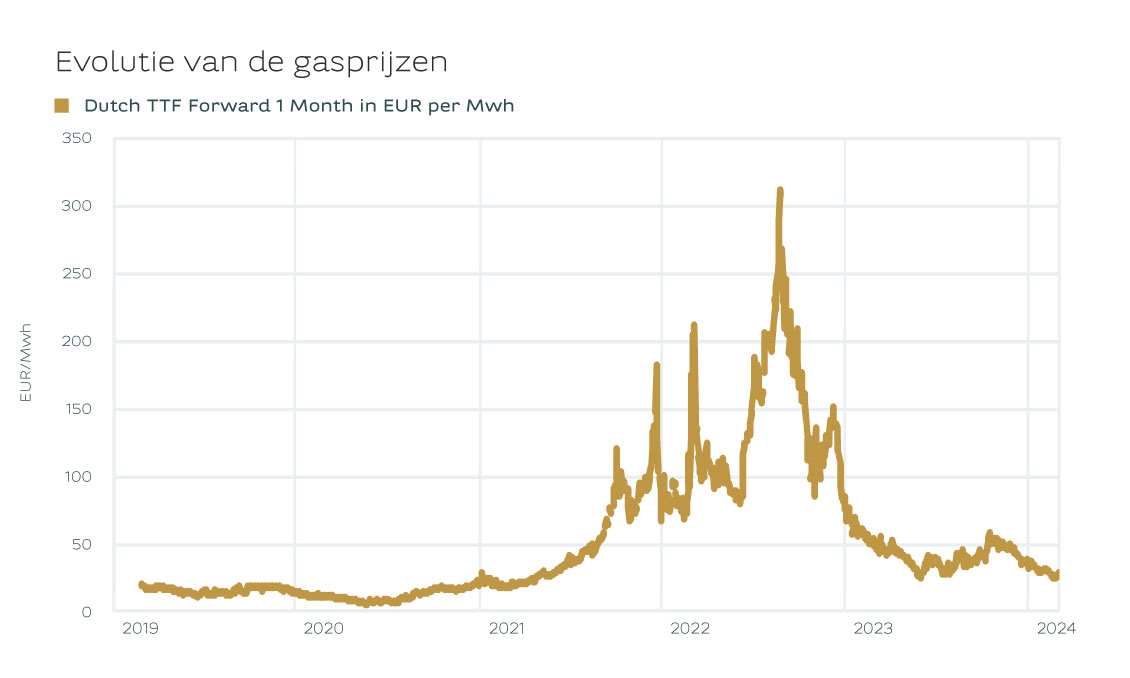 De energieprijzen hebben er de afgelopen jaren een dolle rit opzitten. In de nasleep van de invasie in Oekraïne stegen ze naar ongekende hoogten. De gasprijzen stegen tot 300 euro per Mwh, terwijl de prijs in de jaren ervoor rond 10 à 15 euro per Mwh schommelde. De elektriciteitsprijzen stegen tot meer dan 600 euro per Mwh. In de jaren daarvoor bedroeg die prijs amper 50 euro per Mwh.