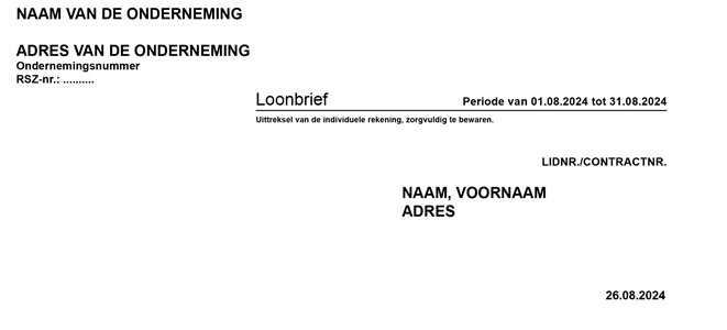 Bovenaan op de loonfiche staan de naam en het adres van de organisatie waar je werkt, de periode waarop de loonfiche betrekking heeft, je identificatienummer, je naam, voornaam en adres.