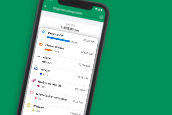 Stel algemeen of per uitgavencategorie limieten in. Zo ziet u in één oogopslag waar u aan toe bent. Heel handig als u spaart of uw uitgaven onder controle wil krijgen.